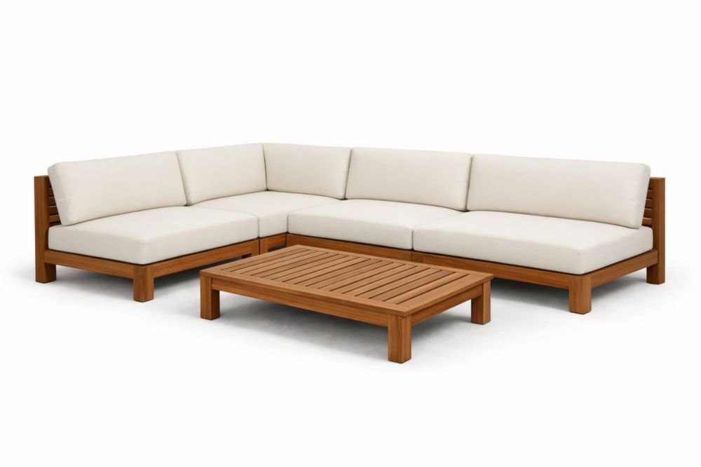 Teak Wood Sofa and Coffee Table Set with Beige Cushions