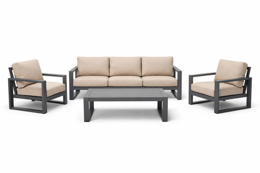 Outdoor Aluminum Furniture Set with Polyester Cushions Beige Gray
