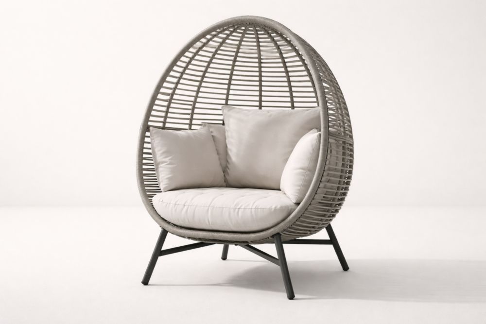 Outdoor Egg-Shaped Wicker Lounge Chair with Cushions in Gray