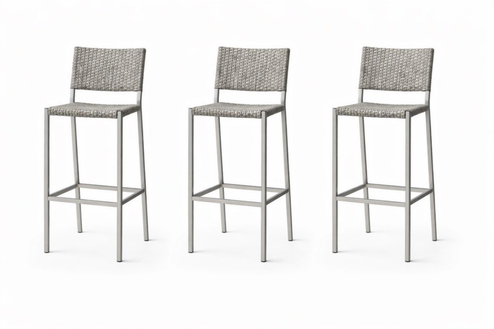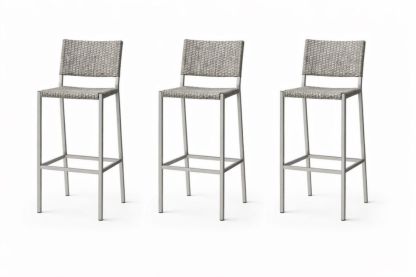 Set of 3 Woven Bar Stools with Metal Frame in Light Grey