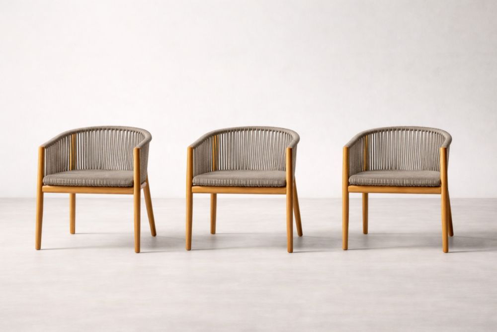 Teak Frame Outdoor Armchair Set with Polyester Rope and Cushions